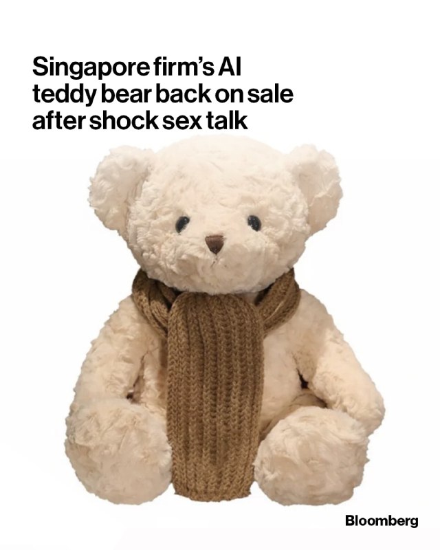 An AI-enabled teddy bear sold by a Singapore-based company is back on the shelves after researchers discovered it chats unprompted about sexual fetishes and other unsuitable topics.https://bloom.bg/3M4UYmv📷: FoloToy