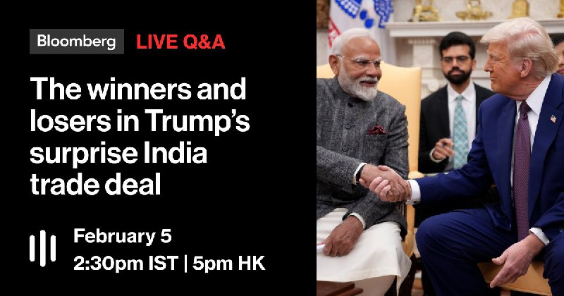 🚨LIVE NOW: Modi secured a surprise trade deal with Trump, boosting the rupee and offering relief to conglomerates. But did Indian refiners lose their access to Russian oil? Bloomberg's Laura Davison, Shruti Srivastava, Alex Gabriel Simon, Rakesh Sharma answer your questions in a Live Q&A on the winners and losers.https://bloom.bg/3NTBfY5