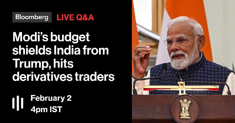 🚨LIVE NOW: Modi's budget delivers a double shock: a shield against Trump's tariffs and a tax hike on India's booming F&O market. Bloomberg's Menaka Doshi, Shruti Srivastava, Chiranjivi Chakraborty and Subhadip Sircar analyze the impact in a Live Q&A. Join and ask your questions:https://bloom.bg/4kg2isC