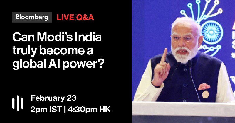 🚨LIVE NOW: The India AI Impact Summit has laid out an ambitious roadmap for 2026. But can Modi make the nation truly a global AI power? Bloomberg reporters answer your questions in a Live Q&A.https://bloom.bg/4ayNSk4