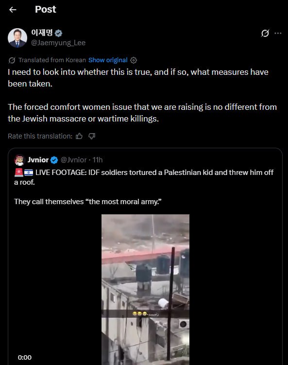 South Korean President Lee Jae Myung:The forced comfort women issue that we are raising is no different from the Jewish massacre or wartime killings.