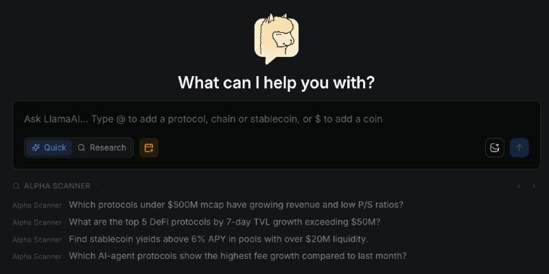 Most crypto research tools force a choice:onchain dataorTradFi data.LlamaAI now pulls both.We just released the biggest update to LlamaAI to-date.Here's everything included:DefiLlama tracks over 5,000 protocols. The new version pairs that database with traditional financial markets, so a single query can cross-reference onchain yield, fundamentals, and TradFi performance simultaneously. LlamaAI ca...