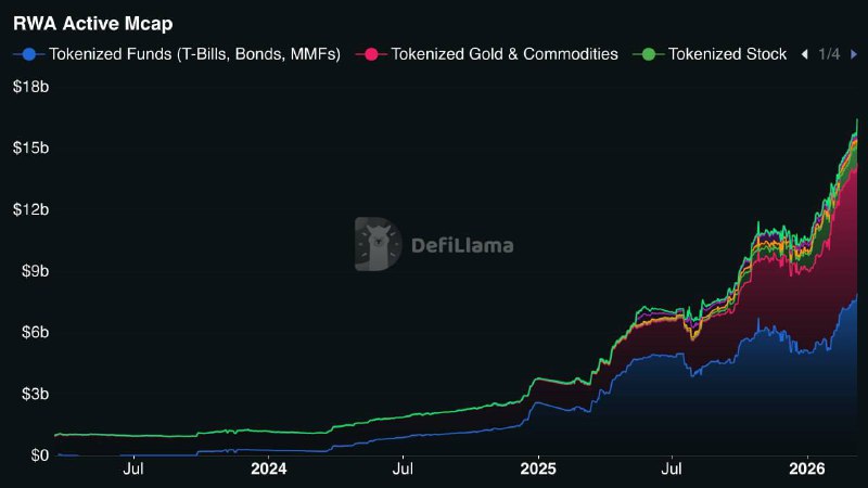 Active MCap of RWAs just surpassed $16B for the first time.On ourRWA dashboard,we differentiate between Onchain MCap (total market cap of an asset onchain) and Active MCap (the portion of those assets deployed in DeFi or distributed outside the issuer's wallets).
