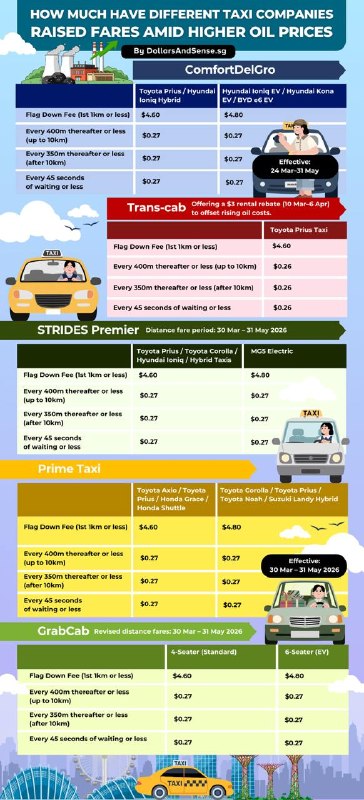 How Much Have Different Taxi Companies Raised Fares Amid Higher Oil PricesTrans-cab is the only taxi operator that has not raised its fares so far.Read more here➡️https://tinyurl.com/bd3bp3f8