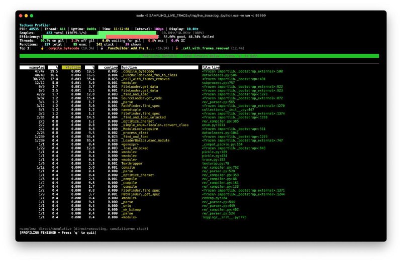 PEP-799: Семплирующий профилировщик встроенный в Python 3.15+Краткий обзор:https://docs.python.org/3.15/whatsnew/3.15.html#whatsnew315-sampling-profilerДокументация:https://docs.python.org/3.15/library/profiling.sampling.htmlКратко:- В 3.15cProfile(написан на C) был перемещен вprofiling.tracing- В 3.15profile(написан на Python) стал deprecated, его уберут в 3.17- Добавили новыйprofiling.sampling(к...